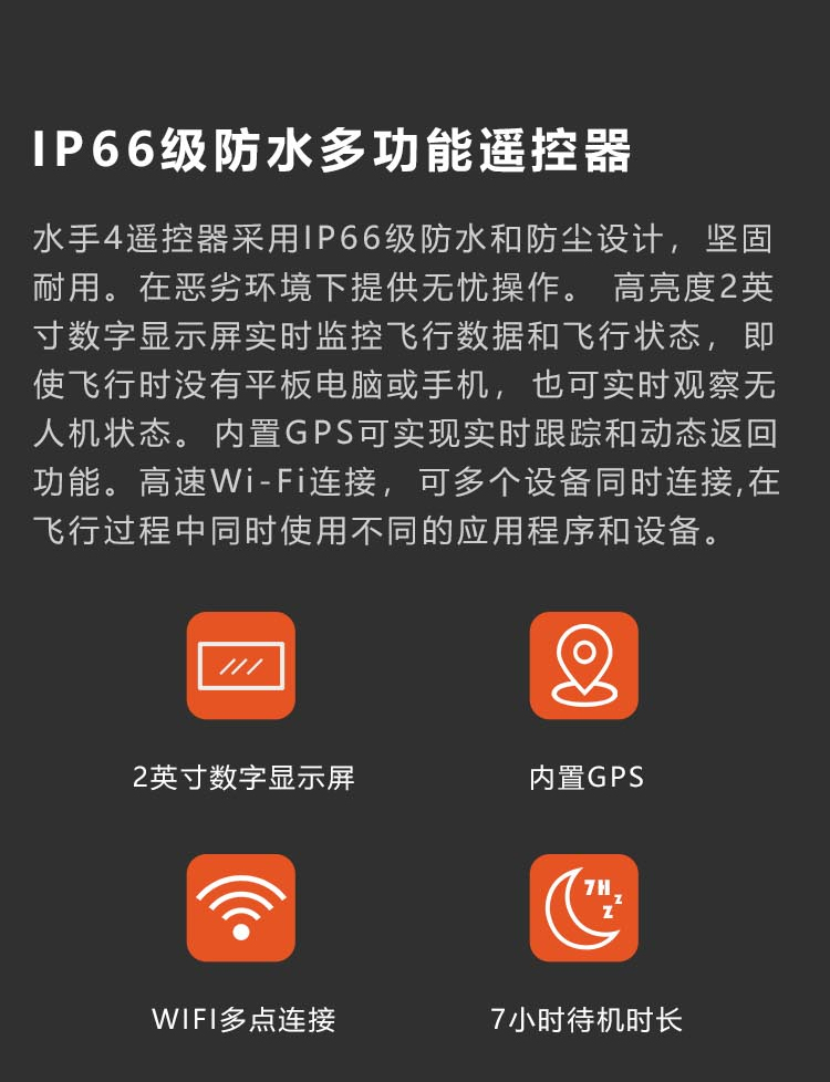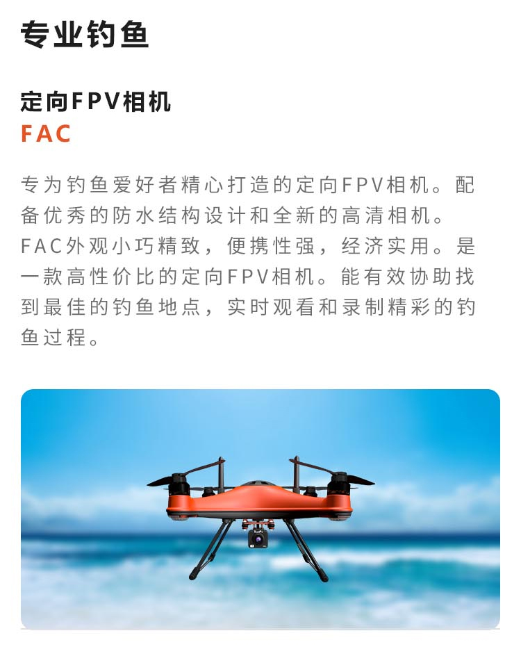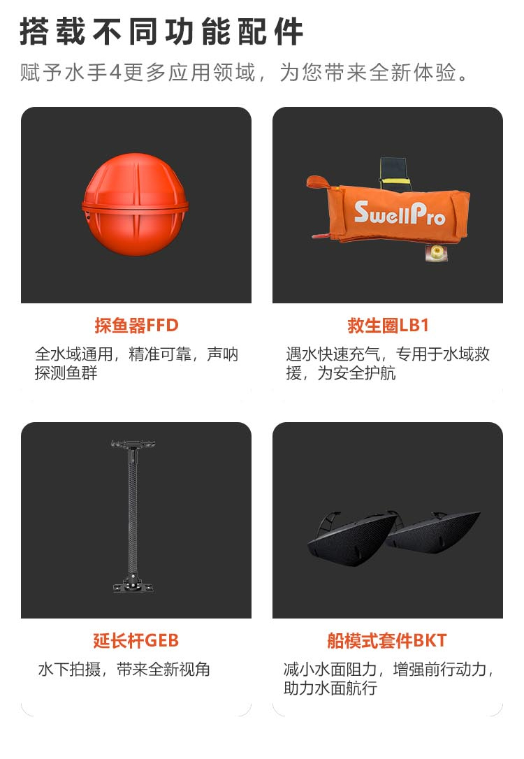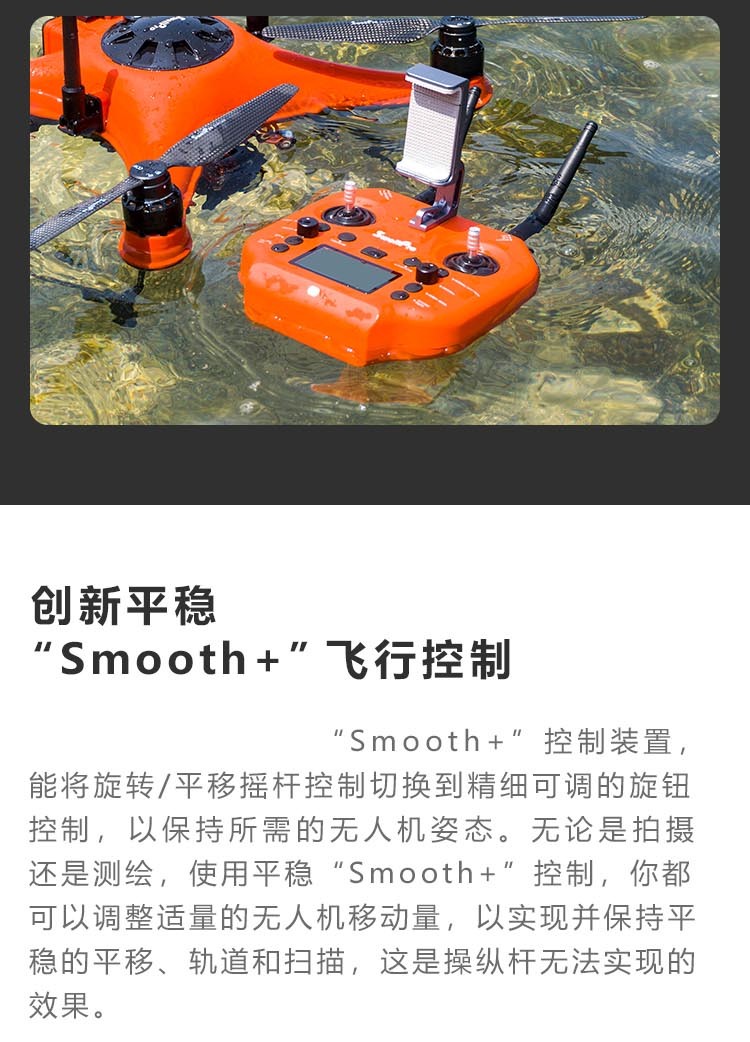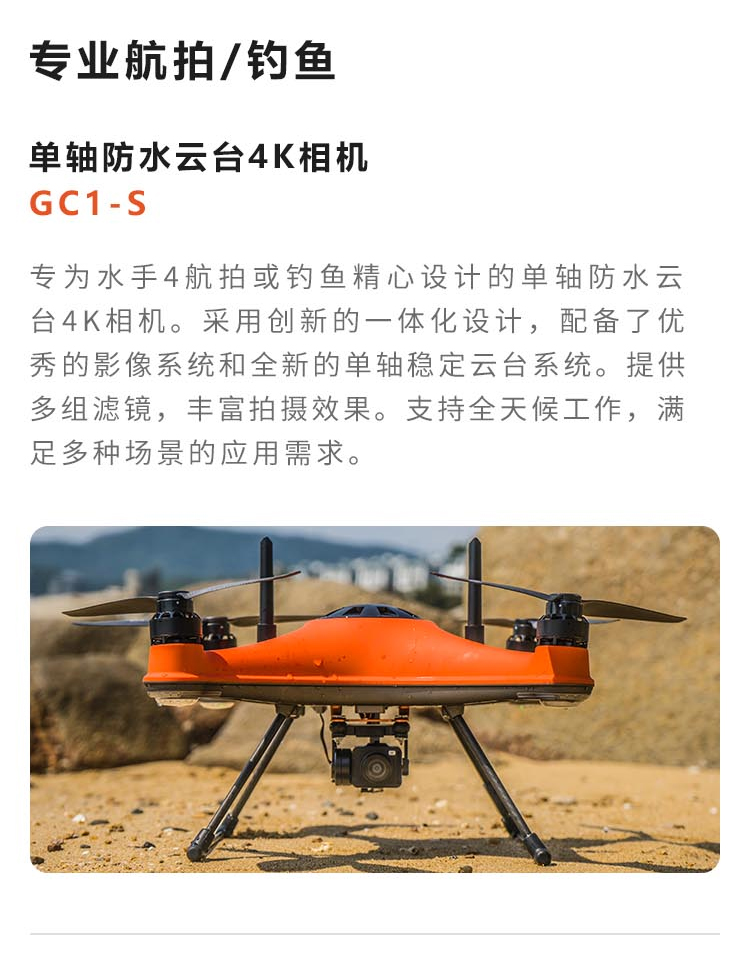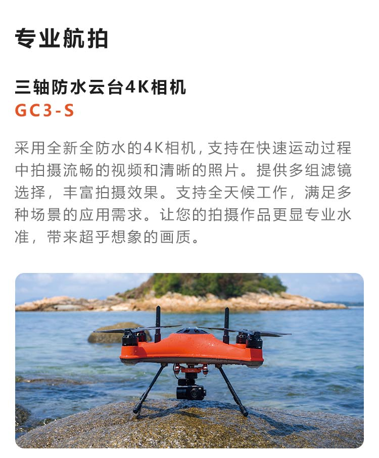 水手4無人機(SplashDrone 4)是一款全新的防水飛行和水上漂浮平臺,專門設(shè)計用于在各種惡劣環(huán)境中多功能作業(yè)。水手4是迄今為止優(yōu)秀的防水無人機之一。采用模塊化防水配件,如4K相機或投放裝置,可以根據(jù)用戶需求自行搭配。水手4用途廣泛,可用于航拍,釣魚,救援和科研等領(lǐng)域。是一個多功能、全天候的防水飛行平臺。
