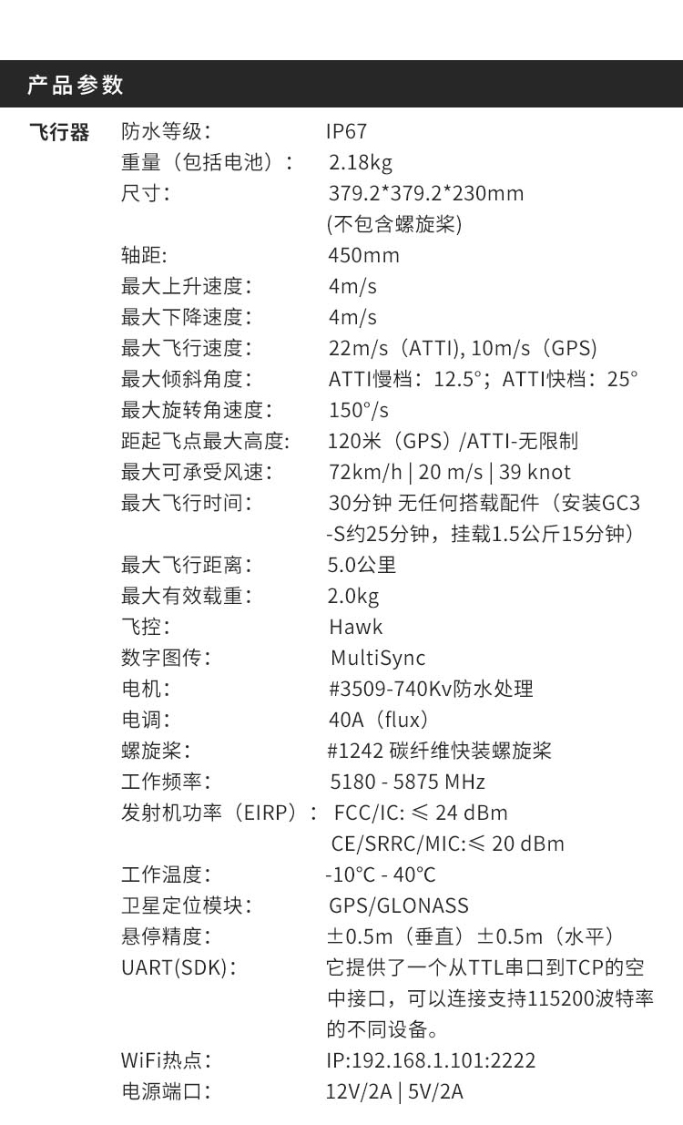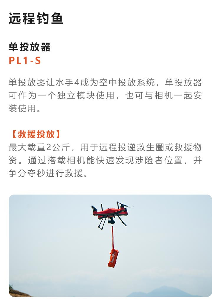 ?2kg負(fù)載,可掛載和遠(yuǎn)程拋物,搭載救援、補寄等物資,可滿足多種任務(wù)需求
