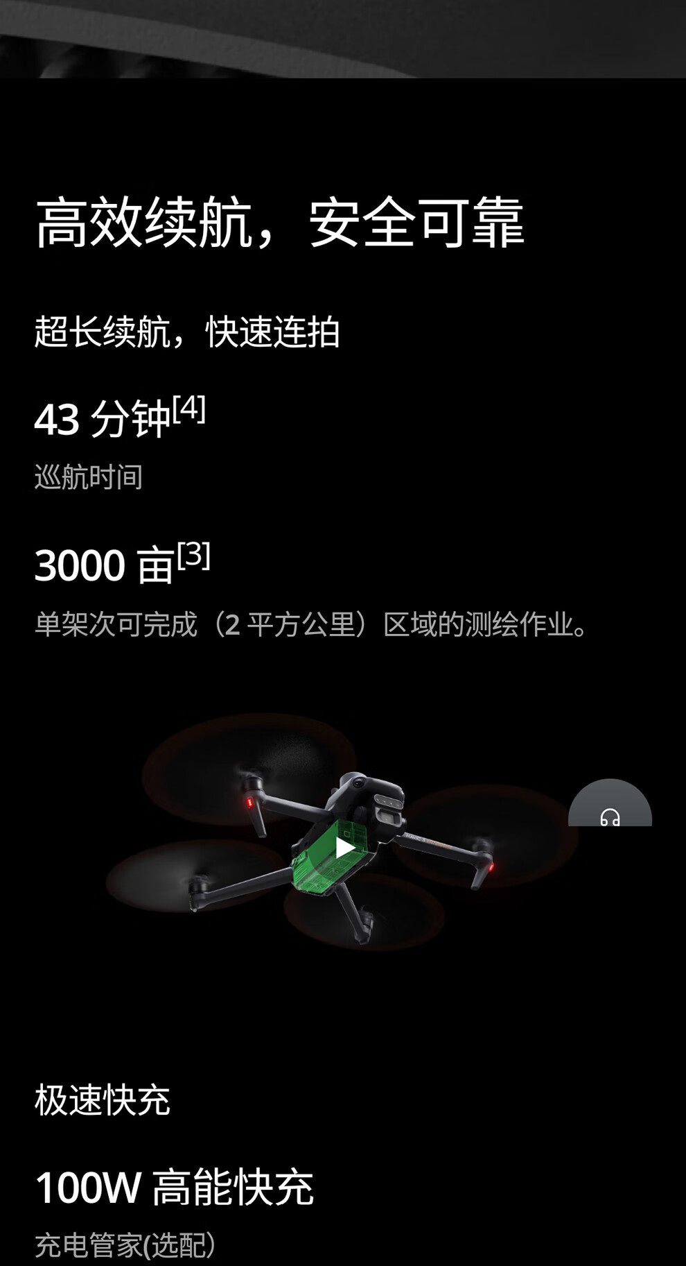 ? 3000畝單架次可完成(2 平方公里)區(qū)域的測(cè)繪 作業(yè)。